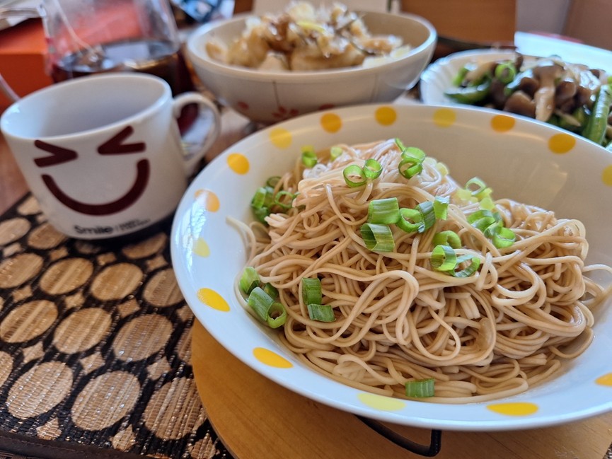颱風天吃麵是台灣傳統飲食文化,來一份乾拌醋麵。微辣小姐的「乾拌麵」一定是很乾的那種,碗裡加入醬油、烏醋、香油拌勻,最後撒上蔥花。