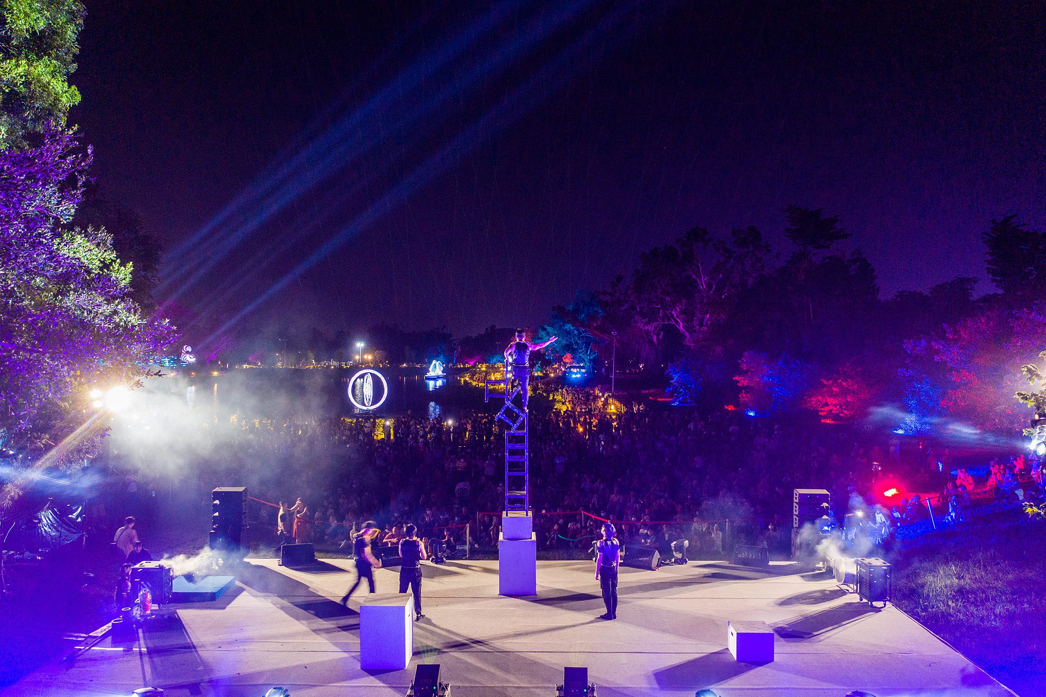 展期進入最後週末,北香湖持續湧入觀賞人潮,18日晚間舉行的閉幕演唱會邀請梁文音、張語噥與陳勢安接力開唱,現場燈海閃爍、氣氛熱烈;隔日壓軸的「幻光特技馬戲秀」結合光影、音樂與肢體演出,為活動畫下精采句點。連日人潮也帶動周邊商圈與市集買氣,攤商笑稱「忙到來不及補貨」,光織影舞更從觀光活動升級為帶動地方經濟的城市品牌。