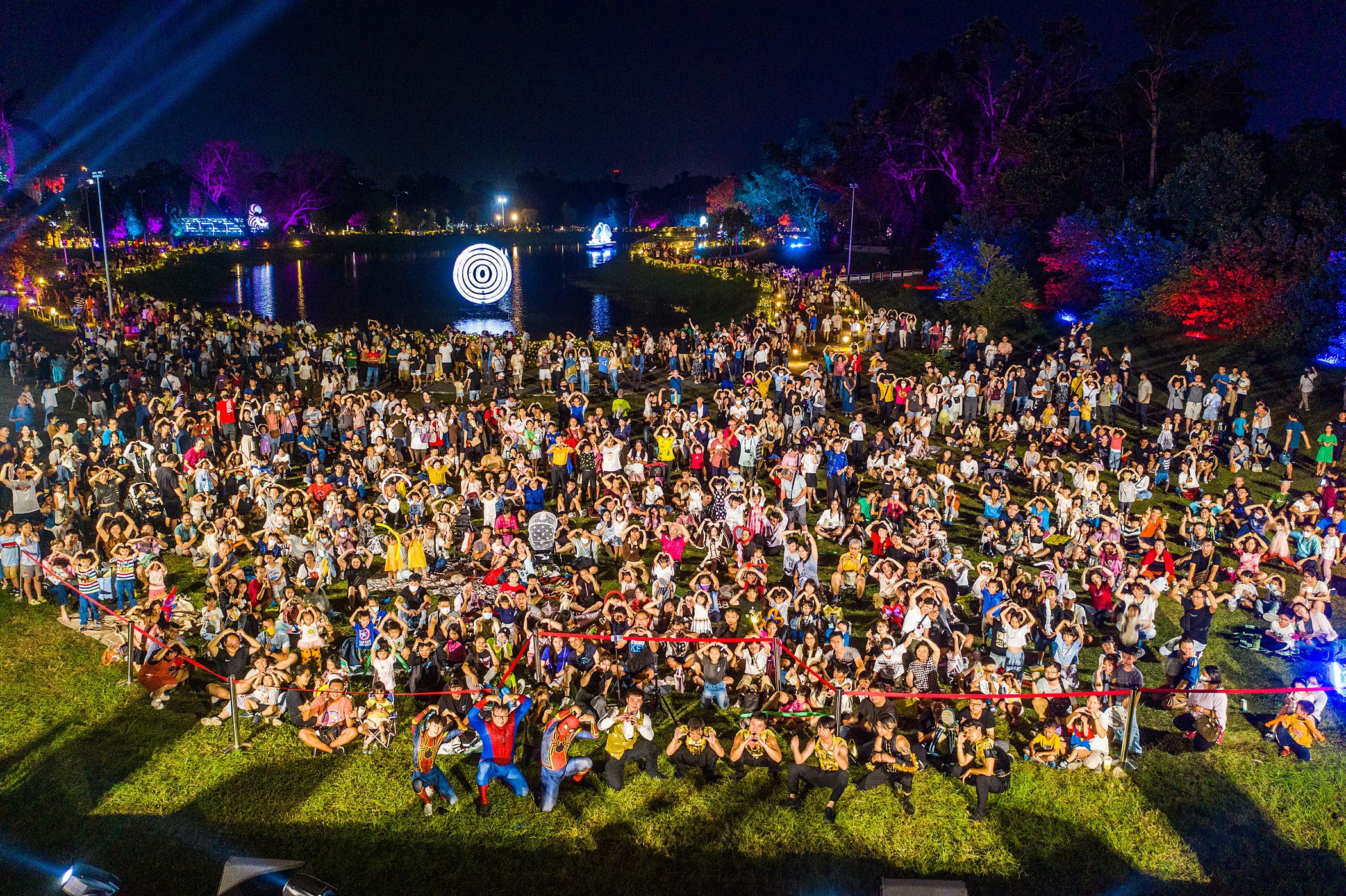 與歷屆不同的是,今年的光織影舞打破僅限夜間觀賞的模式。策展團隊以「白天拍照導向、夜晚光影體驗」為策劃主軸,讓展區裝置在自然光與燈影之間呈現雙重樣貌。白天,作品融入湖景與植栽,強調結構與材質的細節;夜晚則透過光影變化與聲音互動,轉化為沉浸式的視覺體驗。這項設計讓遊客白天與夜晚都能體驗不同風貌,成功擴大來訪時段,成為人次突破百萬的重要關鍵。
