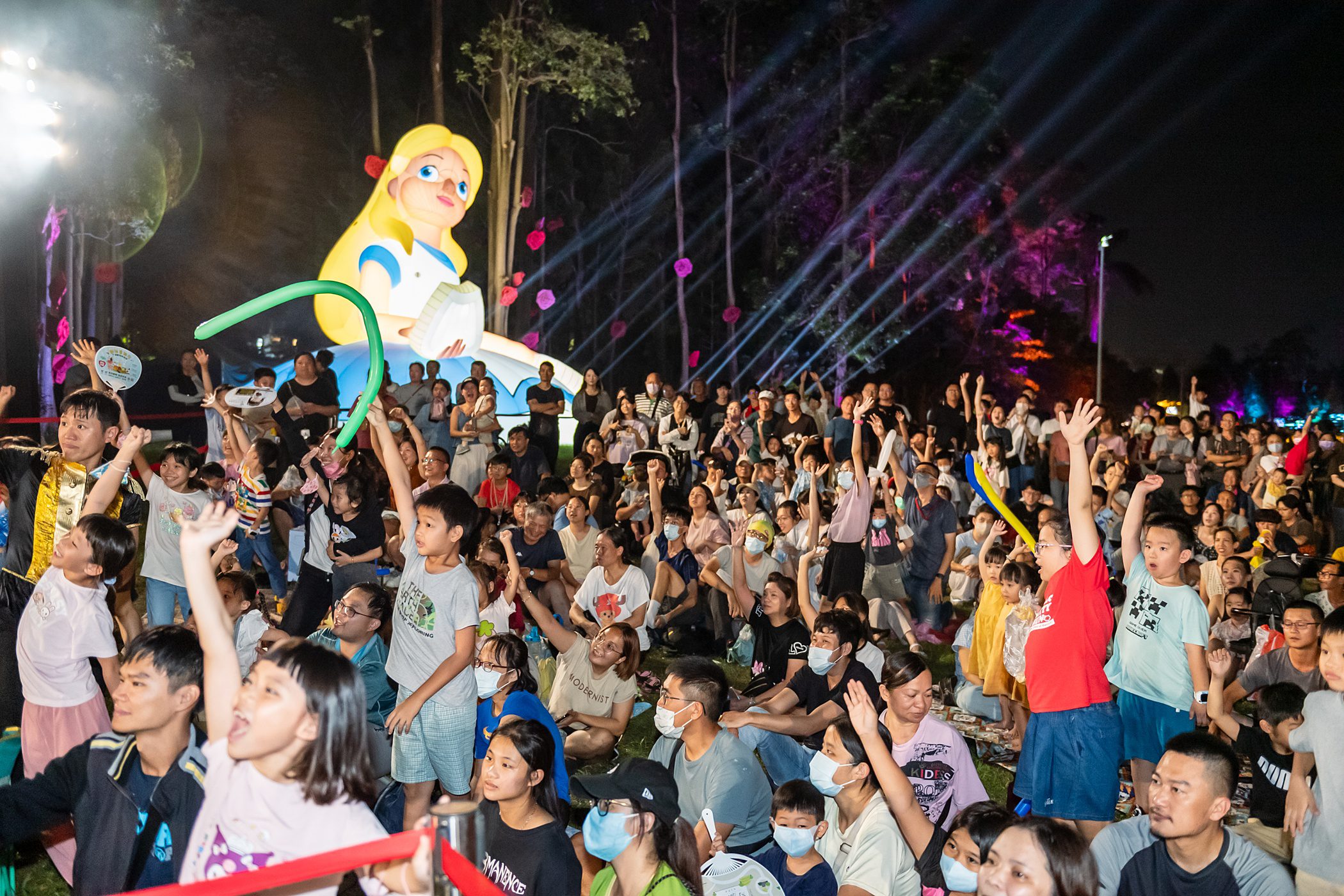 展區中,9米高的愛麗絲主題裝置矗立花海間,湖畔的「光月疊影」旋轉月亮與水面倒影相互呼應;沉浸光環隧道則被暱稱為「魔法門」,成為孩童最愛的展區之一。「舞動潮光」的牡蠣寶寶造型也吸引許多親子駐足拍照。日夜交錯的展演方式,使光織影舞不僅是夜間活動,更成為結合藝術、科技與觀光的城市展演。