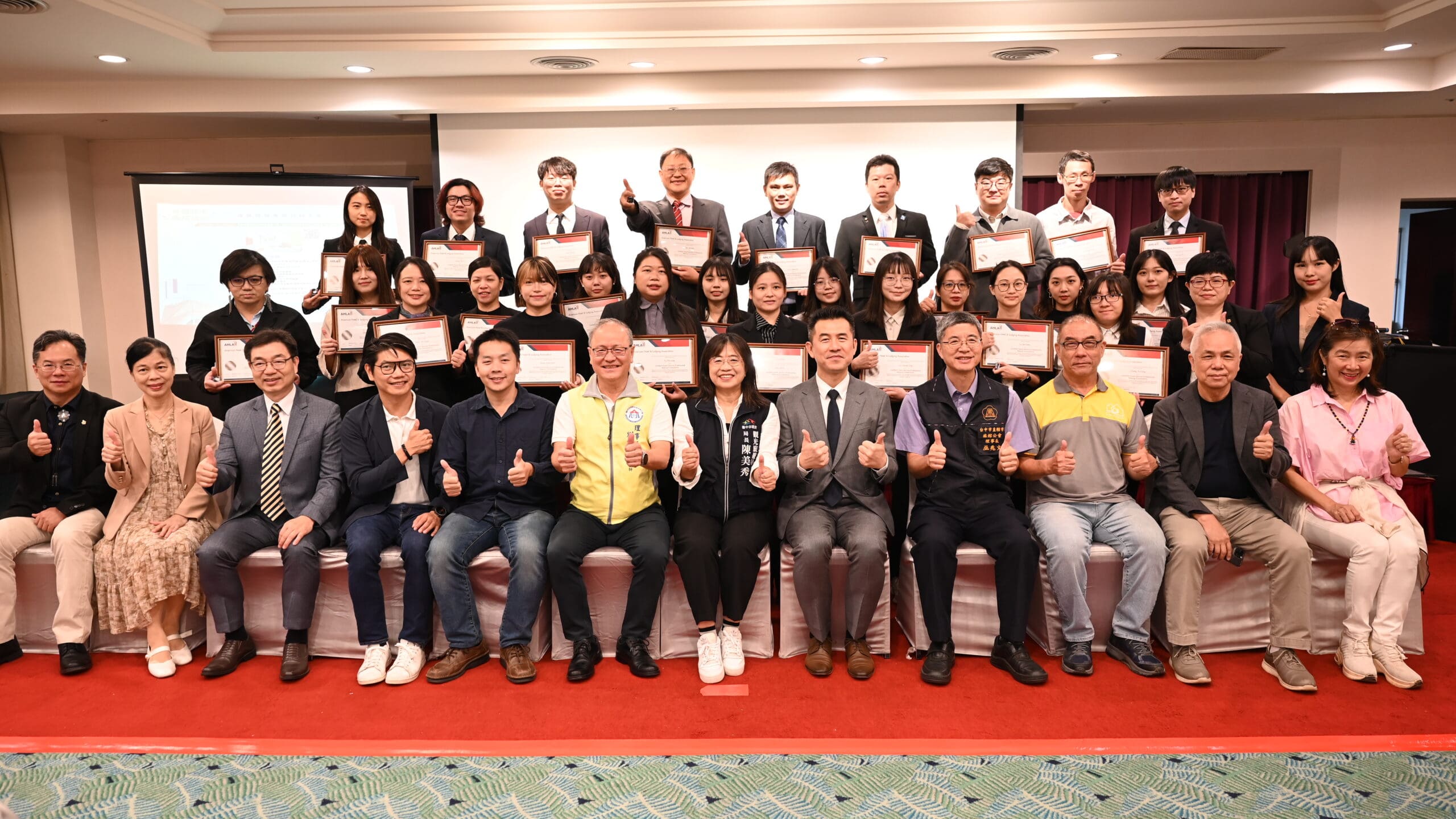 今日發表會,觀旅局長陳美秀、台中市旅館商業同業公會理事長劉國隆、台中市觀光旅館商業同業公會理事長姜文偉、台中市直轄市旅館商業同業公會理事長巫兆文、台中市民宿協會理事長陸冠全、台中市樂活觀光產業聯盟協會理事長廖述盛、台灣觀光產業聯盟協會理事長黃正聰、台中市國際觀光發展協會理事長楊琮霖、台中市產業故事館發展協會理事長周信宏、台中市旅遊協會理事長陳秀枝、台中市好禮協會副理事長陳汶萱及旅館業代表等均到場共襄盛舉。