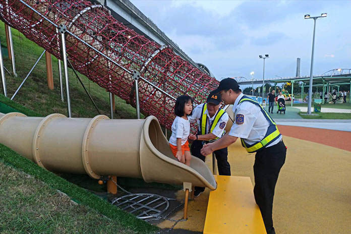 新北市高灘處提醒民眾,炎炎夏日,除了在熊猴森樂園開心歡樂遊玩外,更要配合園區保全現場秩序及防汛管控,才能快快樂樂地「熊猴森」,更能平平安安回家。