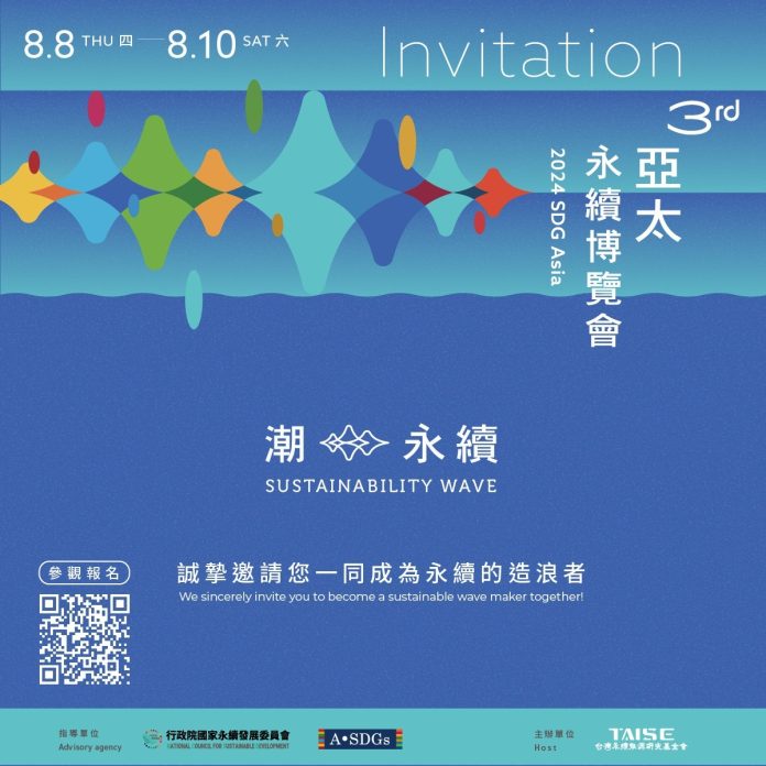 2024第三屆亞太永續博覽會以「潮·永續」為主題,於2024年8月8日至8月10日在台北世貿一館A、C、D區舉行。本屆活動以共同推動台灣邁向永續發展為目標,透過七大潮流引領政策、城市、企業、生活、教育、NGO與國際合作,共同提升經濟價值,成為永續的造浪者,攜手翻轉世界!
