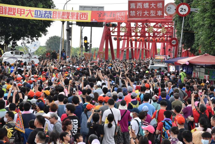 圖說:上萬信徒夾道爭睹大甲媽。(雲林縣府資料照)