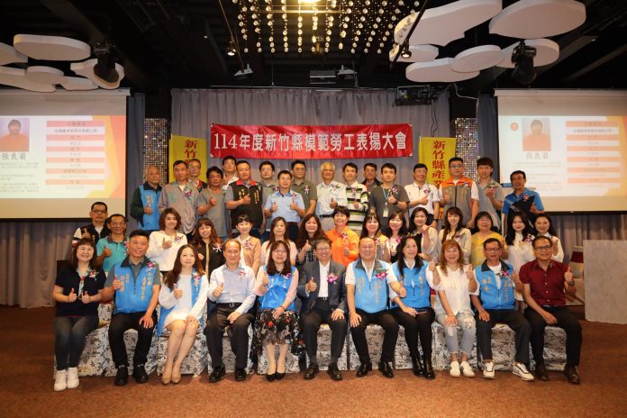 五一勞動節前,新竹縣政府為感謝勞工朋友於自身工作崗位的努力付出與貢獻,今(18)日上午在芃華國際餐飲文化會館表揚45位縣政府及產業總工會推薦之模範勞工,並頒發10位縣級模範勞工獎牌及6000元獎勵金,鼓勵每位堅守崗位的勞工朋友。