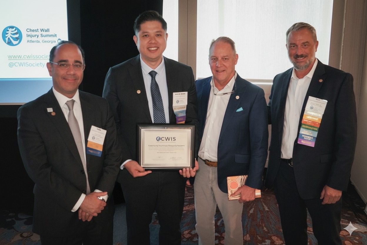 高雄市立小港醫院「超微創肋骨骨折團隊」再創佳績!今(2025)年榮獲國際胸腔外傷醫學會(Chest Wall Injury Society, CWIS)肯定,正式成為亞洲第一間 CWIS 認證合作中心(Collaborative Center)。這項殊榮不僅是對小港醫院臨床成果的肯定,更象徵台灣胸腔外傷醫療水準已站上國際舞台。