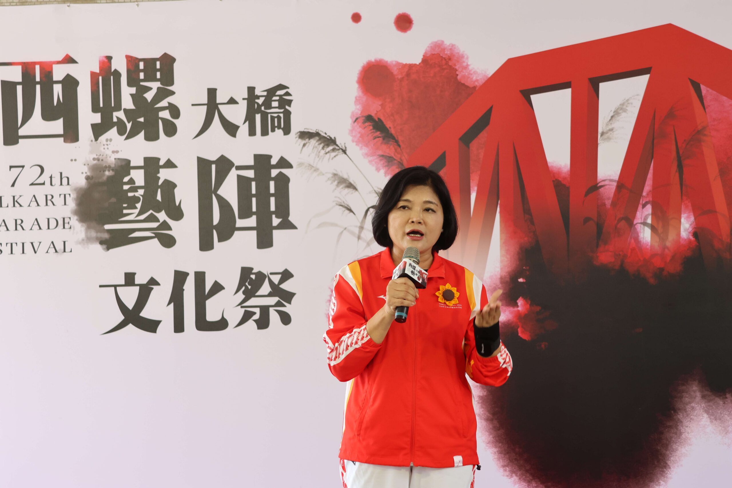 陳處長指出,今年活動主視覺以「文化傳承」為核心精神,透過書法墨韻、濁水溪畔具代表性的自然景觀甜根子草剪影與西螺大橋經典紅色的融合,傳遞地方信仰與土地情感的深厚連結。這份視覺精神也將延伸至現場活動之中,無論是書法揮毫、市集巡禮、藝陣展演或高空焰火施放,皆展現雲林濃厚的文化底蘊與在地精神。