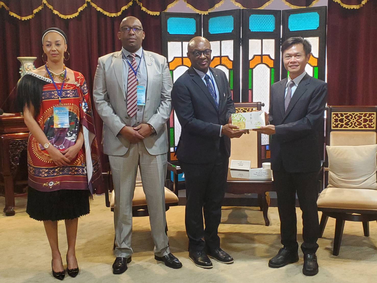 此次拜會雙方相談甚歡,氣氛熱絡,奈及利亞駐華商務辦事處雷利克斯代理處長、索馬利蘭共和國駐台灣代表處加拉爾代表、史瓦帝尼王國大使館派翠絲一等秘書、非洲駐台經貿聯合辦事處林自強處長皆出席交流;市府除副秘書長林育鴻,文化局長陳佳君、經發局副局長林敏棋、觀旅局副局長蔡宗昇、工策會副總幹事林家興、秘書處副處長李政峯也出席陪同接待。