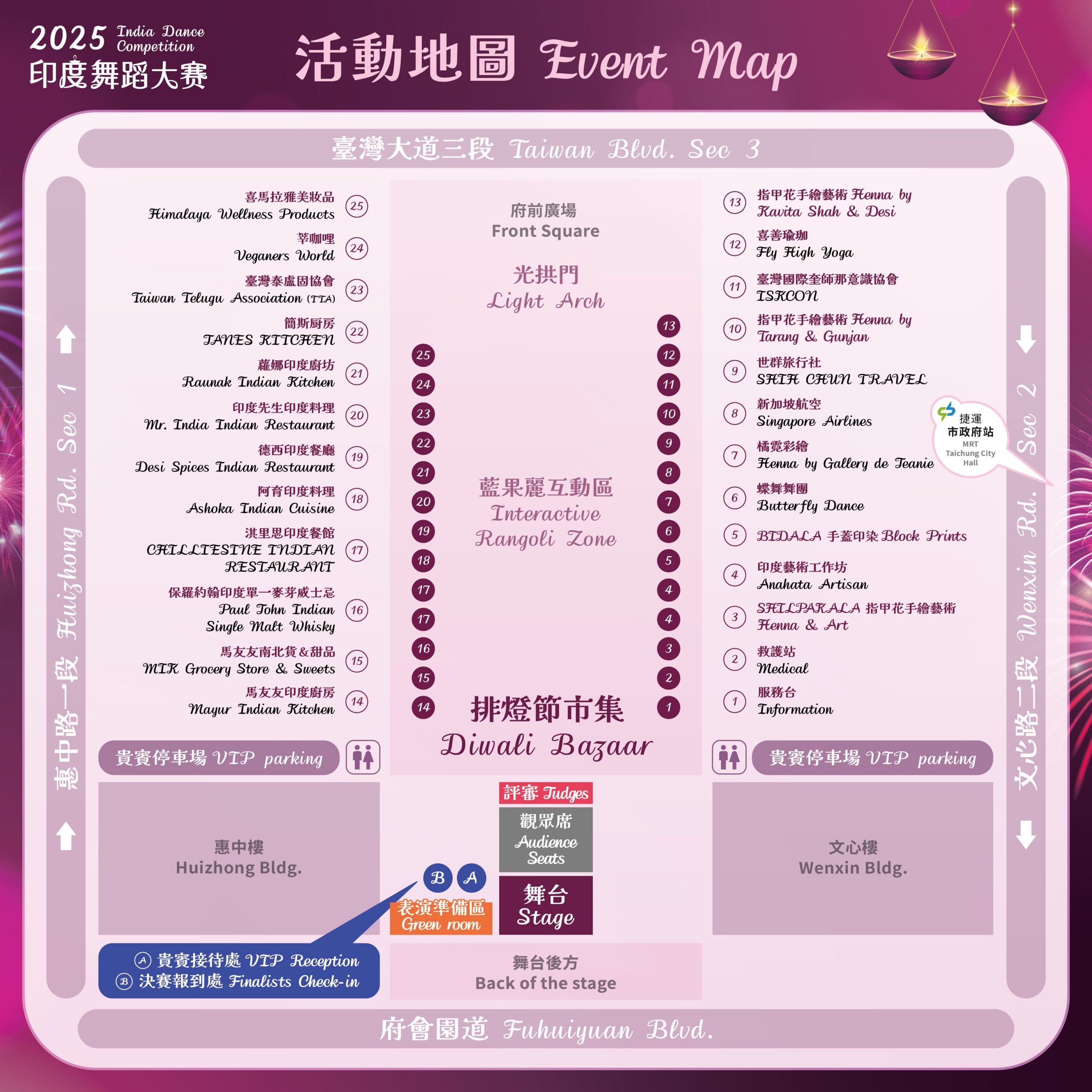 為慶祝印度最重要的節慶之一「排燈節」(Diwali),印度台北協會與台中市政府攜手合作,將於10月24日(星期五)下午3時至晚間9時,在台中市政府府前廣場舉辦「2025印度舞蹈大賽暨排燈節慶典」。民政局長吳世瑋表示,活動當天除有印度舞蹈決賽,現場並設有充滿節慶氛圍的印度特色市集,提供多樣美食、手工藝品與文化體驗,歡迎市民朋友一同體驗印度多元繽紛的文化魅力,分享節慶的喜悅與祝福。