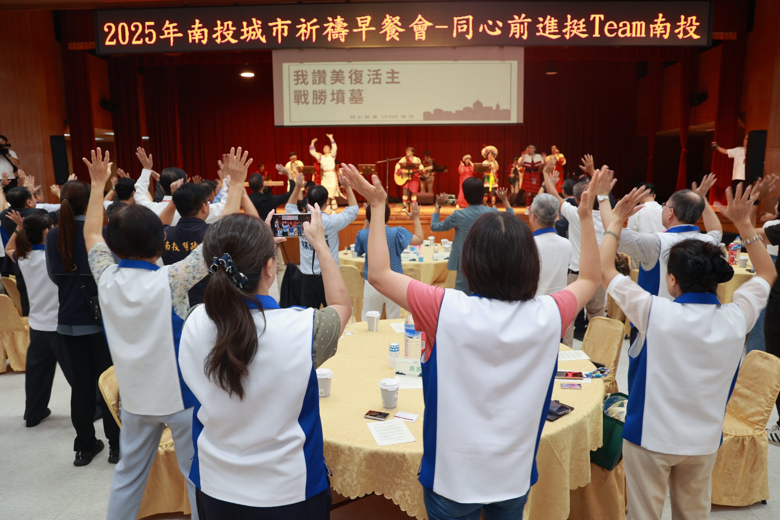 「2025南投城市祈禱餐會」,以「同心前進挺(TEAM)南投」為主題,透過禱告為南投祝福,同時祝福縣政發展,300位來自各行政區教會聯禱會、各宗派與教會代表出席之外,包括立委游顥、TVBS聯利媒體董事長陳文琦、南投城市祈禱早餐會籌備主席陳孟煥牧師;縣議員林儒暘、張秀枝等人也到場參加。