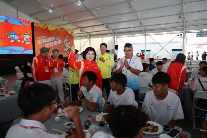 衛生局長曾春美也說,為讓全運會賽事選手、教練、工作人員們吃得安全,今日英雄宴上,雲林縣衛生局由食品衛生科及稽查人員派駐、全程監廚,希望保持供膳環境衛生,確保製作流程符合優良食品安全衛生規範,讓大家吃得安心、吃得健康,好好表現。