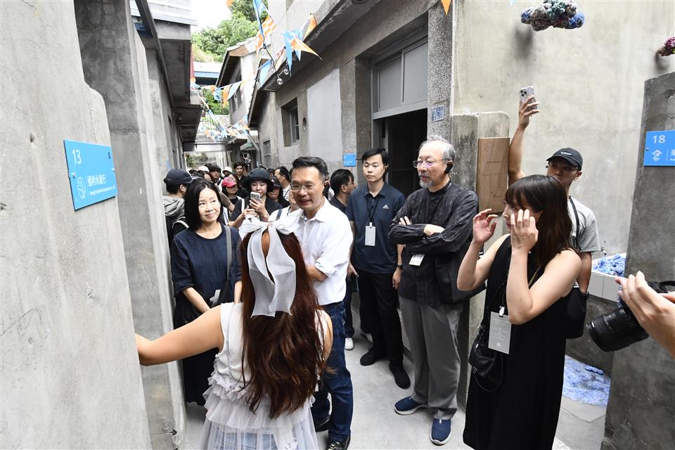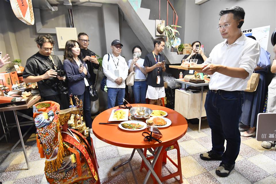 蘇副市長觀展過程中,巧遇於中興莊人人百貨內坐鎮的埤腳五通宮五顯大帝以及南瑤宮媽祖,神明戴上「蕭顯德」與「林默娘」的名牌,導覽人員解釋各商家會輪流請神明到自家展間作客,象徵加持人氣與流量,蘇副市長應邀為神明開桌,成為參訪過程中的小趣事。