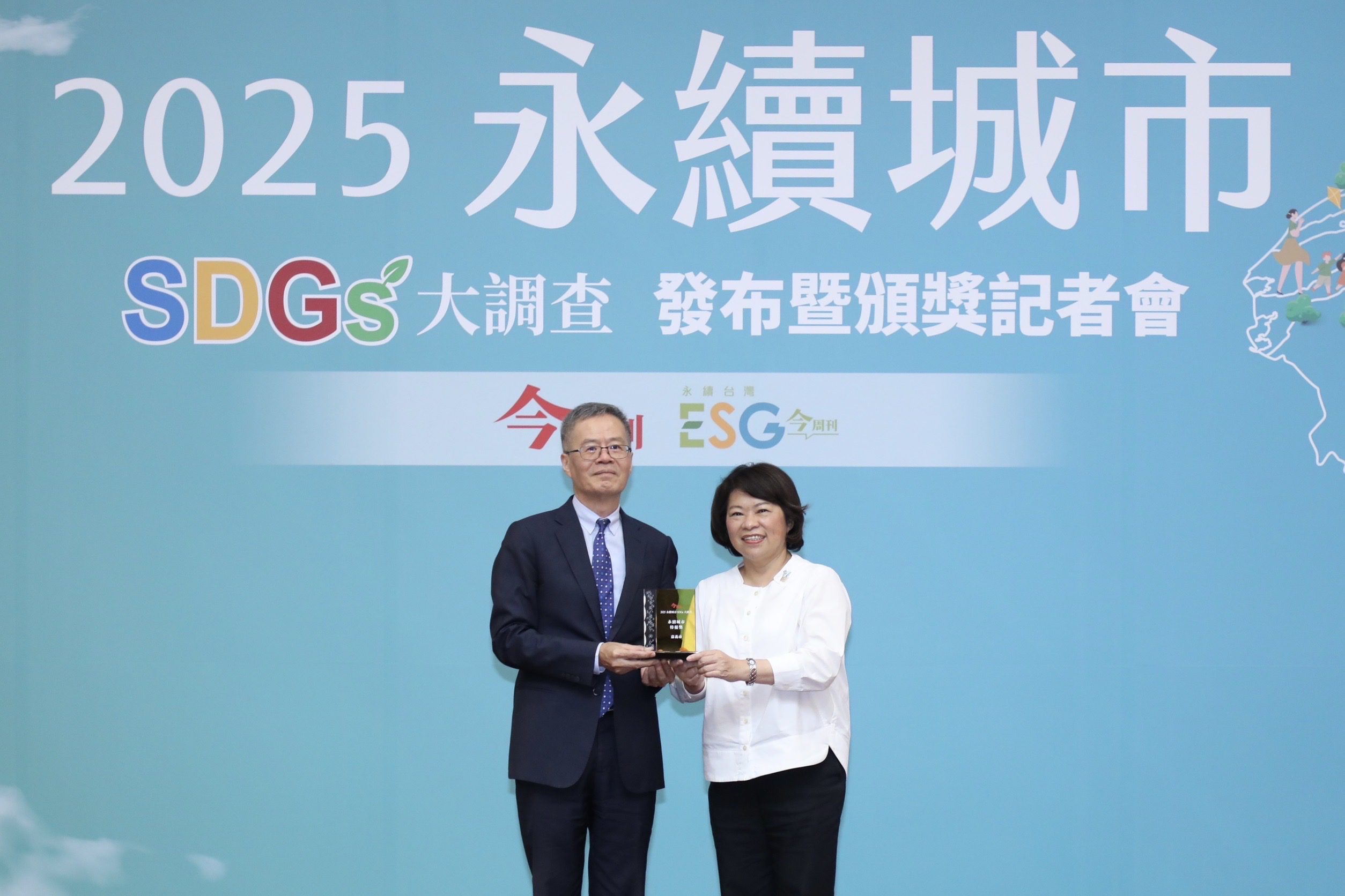 嘉義市再度在全國永續評比中脫穎而出!黃敏惠市長今(22)日出席《今周刊》2025年「永續城市SDGs大調查」發布記者會,嘉義市以堅實的韌性治理與跨域永續作為,第四度榮獲「永續城市特優獎」肯定,展現嘉義市推動幸福永續城市的決心與成果。