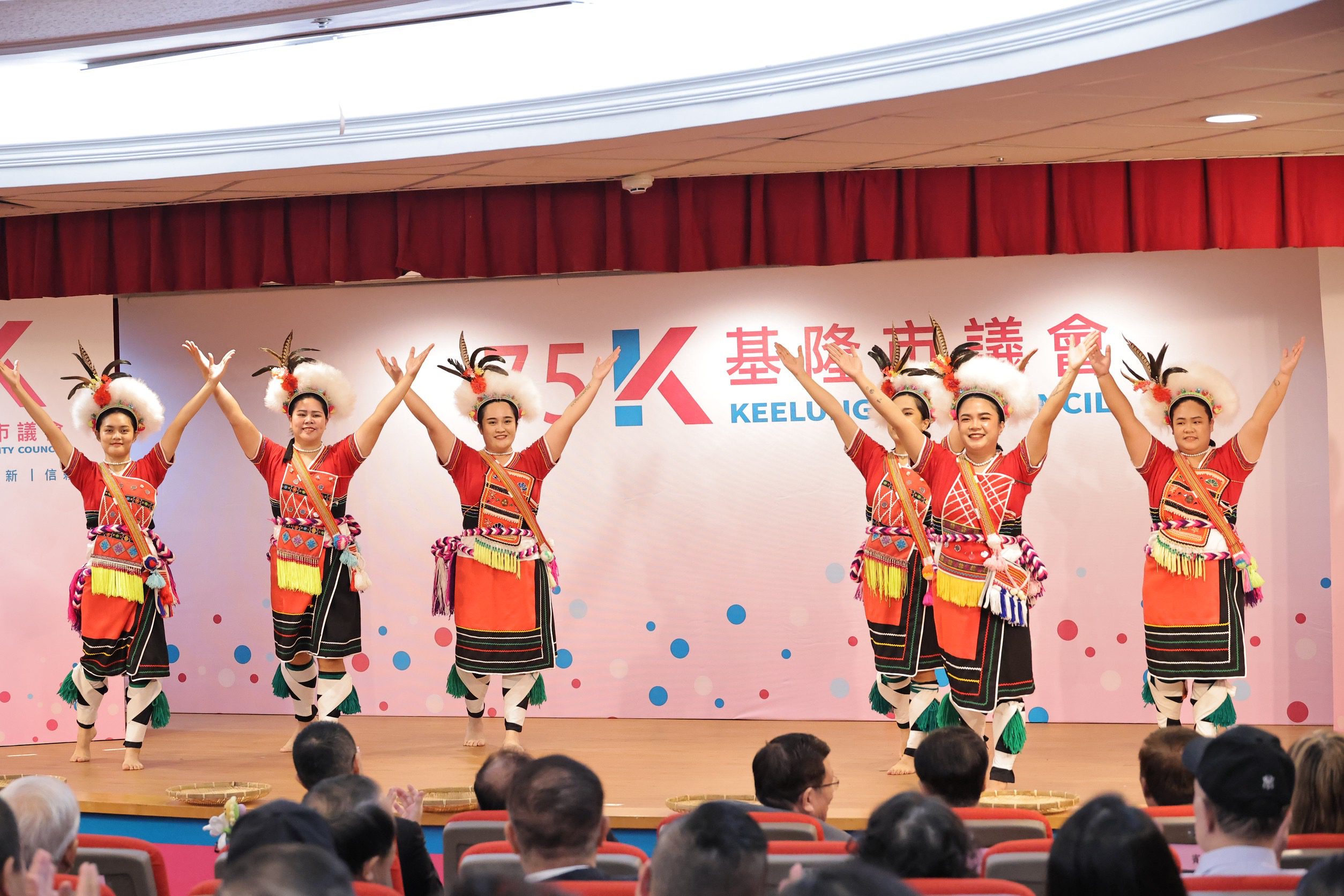 典禮現場安排東信國小國樂團與原住民舞團演出,展現城市多元文化魅力。活動最後由童子瑋議長、楊秀玉副議長與謝國樑市長共同帶領嘉賓齊唱生日快樂歌,祝賀基隆市議會75週年,象徵市府與議會攜手合作、邁向新里程的開始。