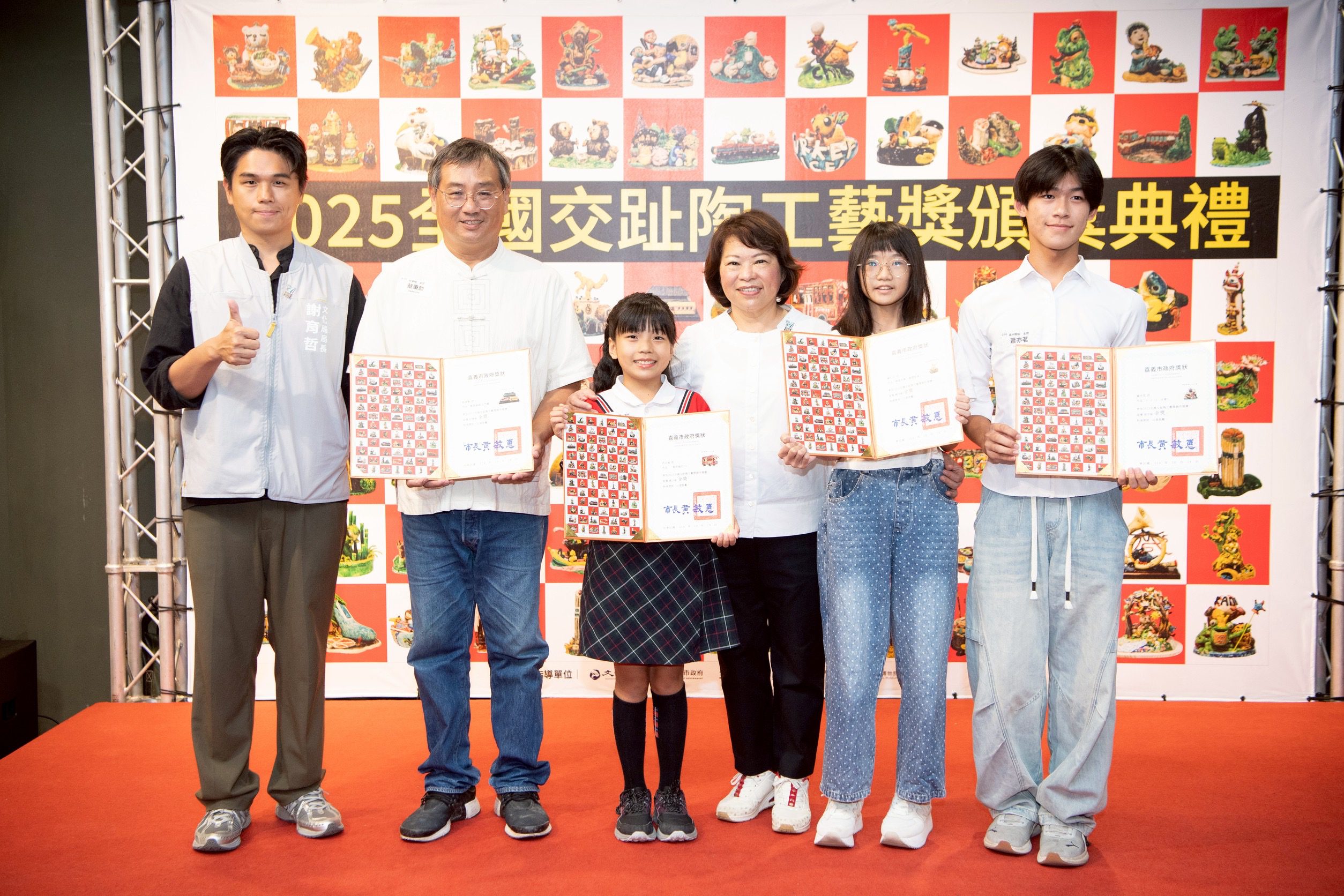 今年適逢嘉義建城321周年,嘉義市政府辦理「2025全國交趾陶工藝獎」以嘉義城市意象與在地文化元素為主題,吸引全國參賽者熱烈響應,共計徵得265件作品。經評審後,最終選出國小組31件、國中組26件、高中組18件及社會組16件,共91件得獎作品。今(24)日,舉行盛大頒獎典禮,嘉義市長黃敏惠為所有獲獎者頒獎,精彩作品即日起至11月9日在博物館內展出,今明兩日在嘉義市立博物館外廣場舉行的為「交趾陶藝術節」揭開序幕。