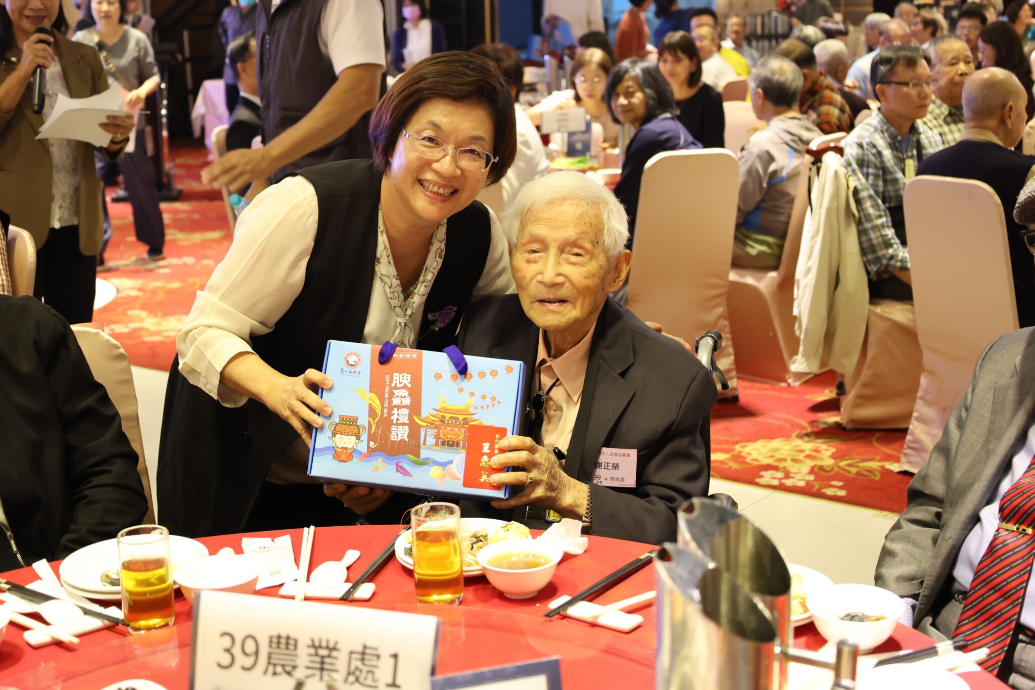 彰化縣政府於昨(24)日在花壇鄉全國麗園大飯店舉辦「彰化縣政府114年退休人員聯誼餐會」,縣長王惠美出席關懷退休人員,感謝他們在職時的付出,參加人員包括本府及衛生局、環保局、稅務局、文化局、各地政事務所、戶政事務所、動物防疫所退休人員及其眷屬近700人,其中有13位超過90歲的長輩,更有1位榮登百歲人瑞的前輩在座。