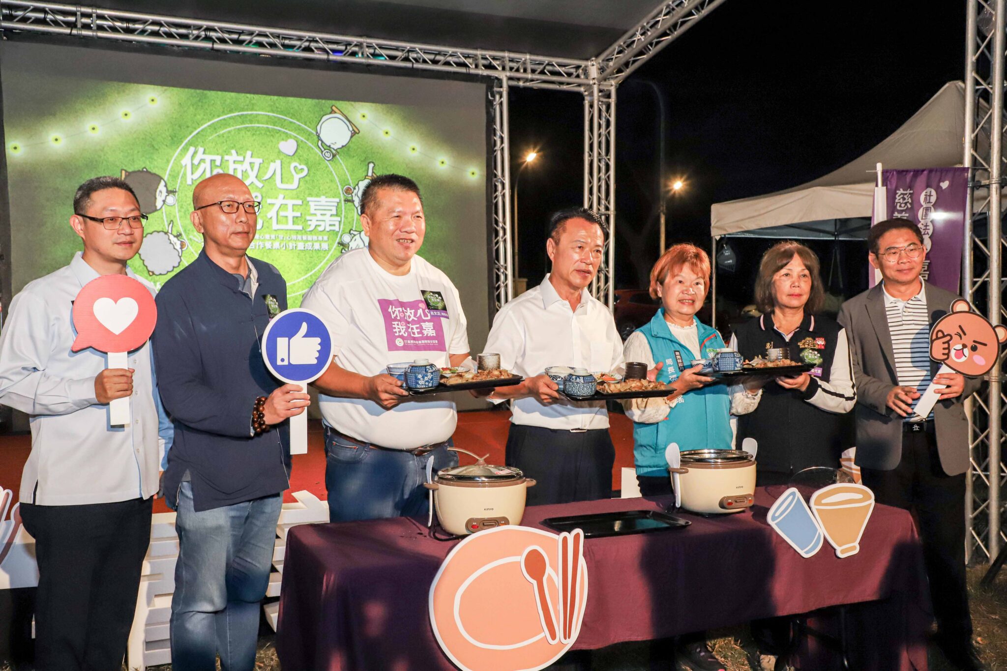 嘉義縣社會局、中華社會福利聯合勸募協會、嘉義縣慈善團體聯合協會合作執行「嘉義縣暖心暖胃甘心待用餐服務專案」,於24日在縣府前廣場舉辦第6場「你放心,我在嘉」集食送愛餐桌計畫暨成果展,活動邀請前5場次合作單位與服務對象齊聚用餐,為今年度計畫劃下圓滿句點。