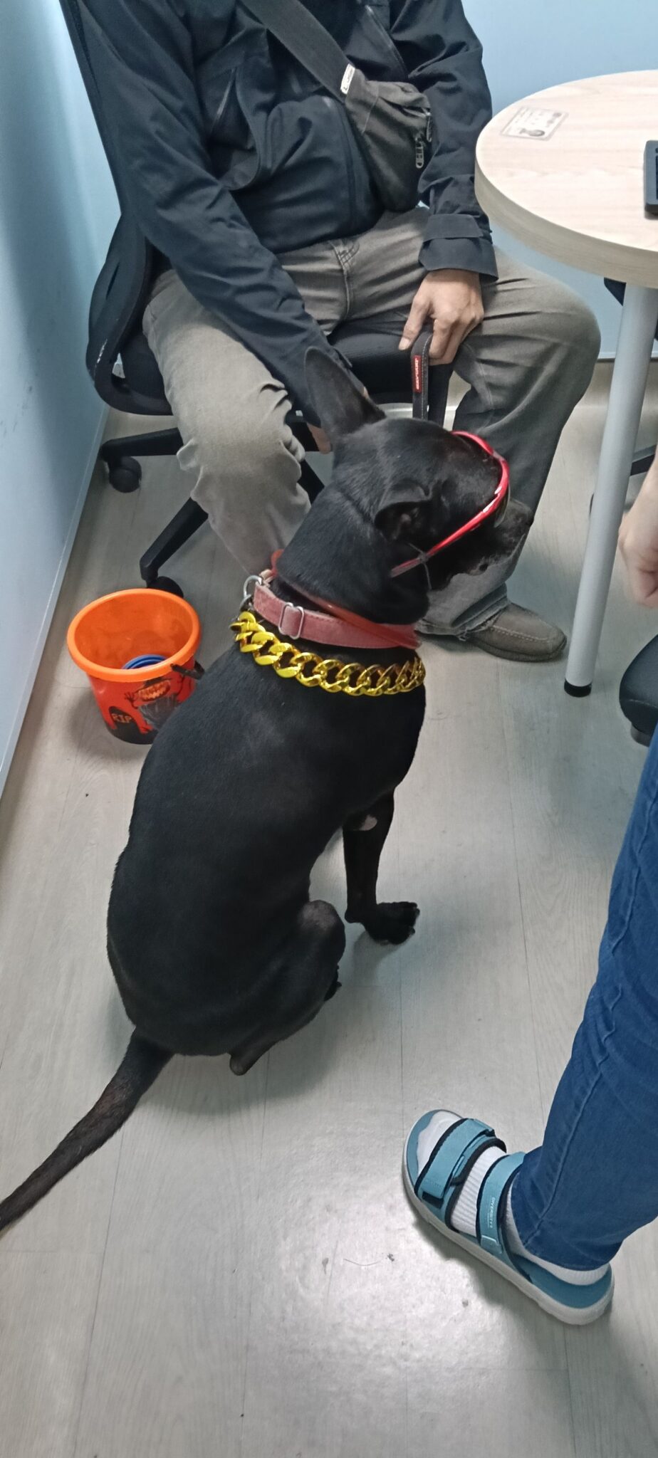 因違規事證明確,動保處當場將取名流氓犬隻沒入收容,卸下其太陽眼鏡,眼鏡屬伸縮材質並非鐵絲,無造成動物傷害,後續將做健康檢查,該犬隻非常親人,也將開放民眾認養,協助慎選認養人。