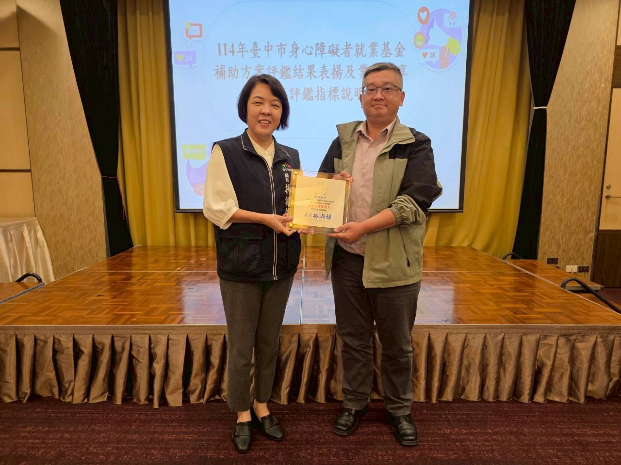 台中市政府勞工局為提升身心障礙者就業服務品質,落實就業平權與職場共融,積極推動身心障礙者職業重建服務及各項就業促進方案,今(28)日於全國大飯店表揚今年度「身心障礙者就業基金補助方案評鑑」優良單位,共有多家推動庇護性就業、支持性就業、職業訓練及職業重建等方案之單位獲獎,表現優異,展現台中市在促進身心障礙者就業上的成果。