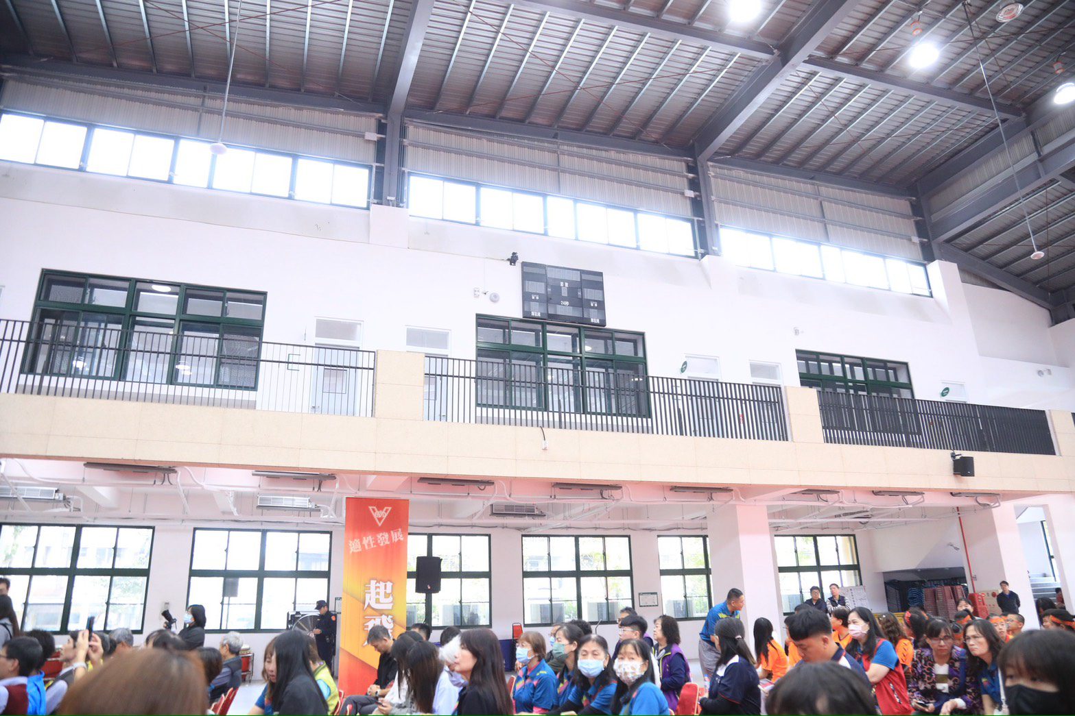 教育局長蔣偉民表示,盧市長特別重視教育,此案自111年開工,於114年完工啟用,新的校舍與活動中心一樓規劃為舉重、室內籃球場、羽球及桌球等運動課程場地,亦作為全校集會與展演空間,二樓則規劃為3間一般教室,並配置體適能、家政、表演藝術、童軍及跆拳道教室各1間;地下一樓為公有停車場共90格車位,紓解周邊停車需求。