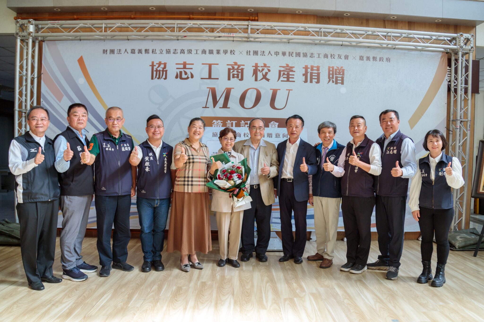 嘉義縣政府、協志工商及協志校友會今2日共同簽署「校產捐贈合作意向書(MOU)」,原協志工商校產將移轉縣府,規劃打造「文化教育園區」,設立「嘉義縣教育專業發展中心」與「專業美術館」,成為文化能量匯聚的新基地,延續教育精神、深化底蘊。