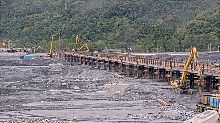 花蓮台9線231k+952馬太鞍溪鋼便橋工程,先前受鳳凰颱風與堰塞湖溢流影響,河床抬高、水位暴漲,臨時水路改道的土石堤數度遭沖毀,導致鋼立柱施工延宕達八天。所幸公路單位建立預警機制,能及時撤離人員與機具,避免災損。交通部公路局東區養護工程分局與花蓮工務段隨即協調施工廠商,積極增派人力與機具投入,使工程進度不僅追回延誤,更已超前。