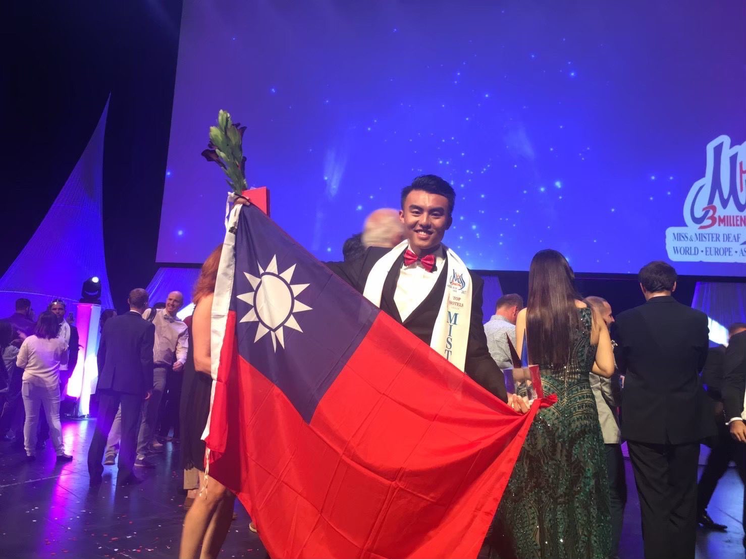 祐臣的生命並不只在職場展現光芒。2017 年,他代表台灣前往捷克參加世界聾人小姐先生選美大賽(Miss and Mister Deaf World),憑藉自信笑容與穩健台風,從二十多國的選手中脫穎而出,榮獲「亞洲先生」。這段經驗讓他更加理解文化差異、舞臺平等與自我價值的重要性。他分享到:「舞臺是平等的。每個人都有被看見的機會。」,也使他在金鷹獎評審中展現出獨特的生命故事與成熟度。