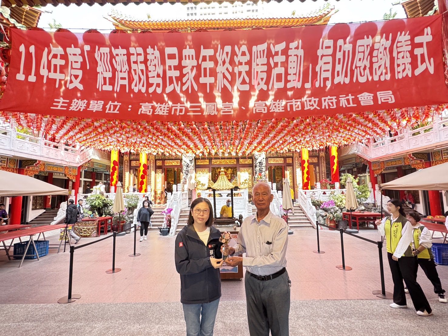 三鳳宮秉持「承蒙社會所賜,回饋社會所需」常年投入社會公益,用行動支持需要幫助的家庭。社會局此次與三鳳宮孫宗英董事長共同舉辦年終送暖活動,象徵民間信仰團體與地方政府攜手合作,成為地方信仰與公益並行的典範,在歲末之際讓平安與善意傳送到每個角落,讓這些家庭感受希望與溫暖。