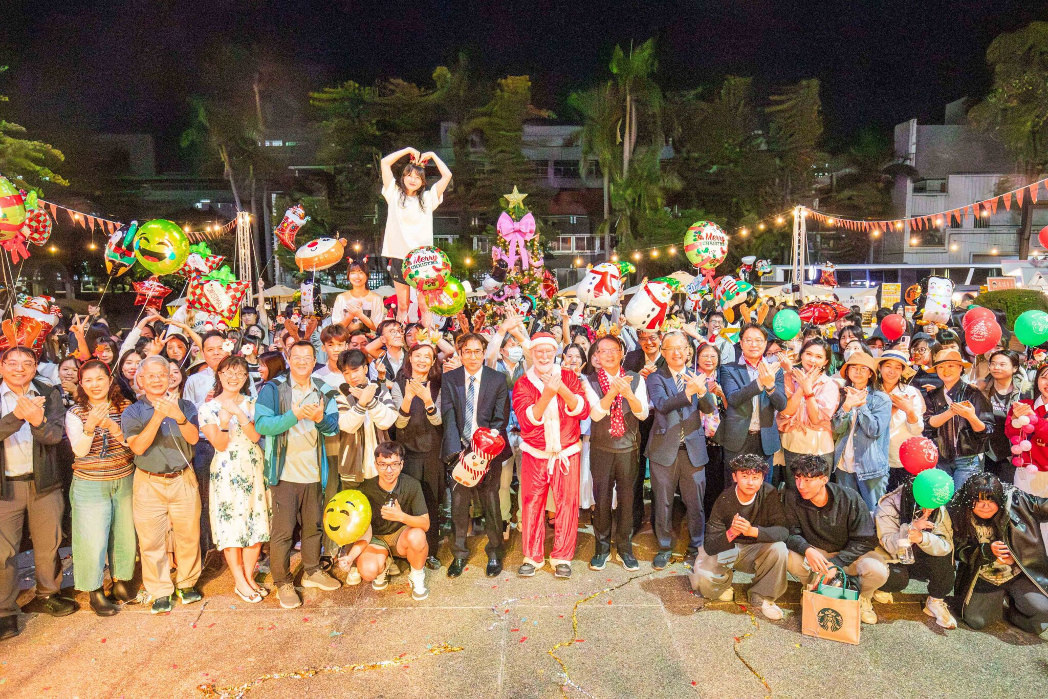 隨著聖誕佳節腳步將近,嘉南藥理大學於12月9日起推出一系列聖誕禮讚活動,並於10日晚間盛大舉行「粉亮甲子 歡度聖誕」點燈儀式,不同於傳統的聖誕節的紅綠配色,今年特別以象徵柔和、包容與希望的粉色系為主色系,呼應學校即將邁向一甲子的輝煌歷史。在璀璨燈火下,校長張翊峰代表全校師生,向嘉藥「永遠的聖誕老人」—Gary老師致上最深敬意,感謝他多年來為校園帶來的歡樂,場面溫馨感人。
