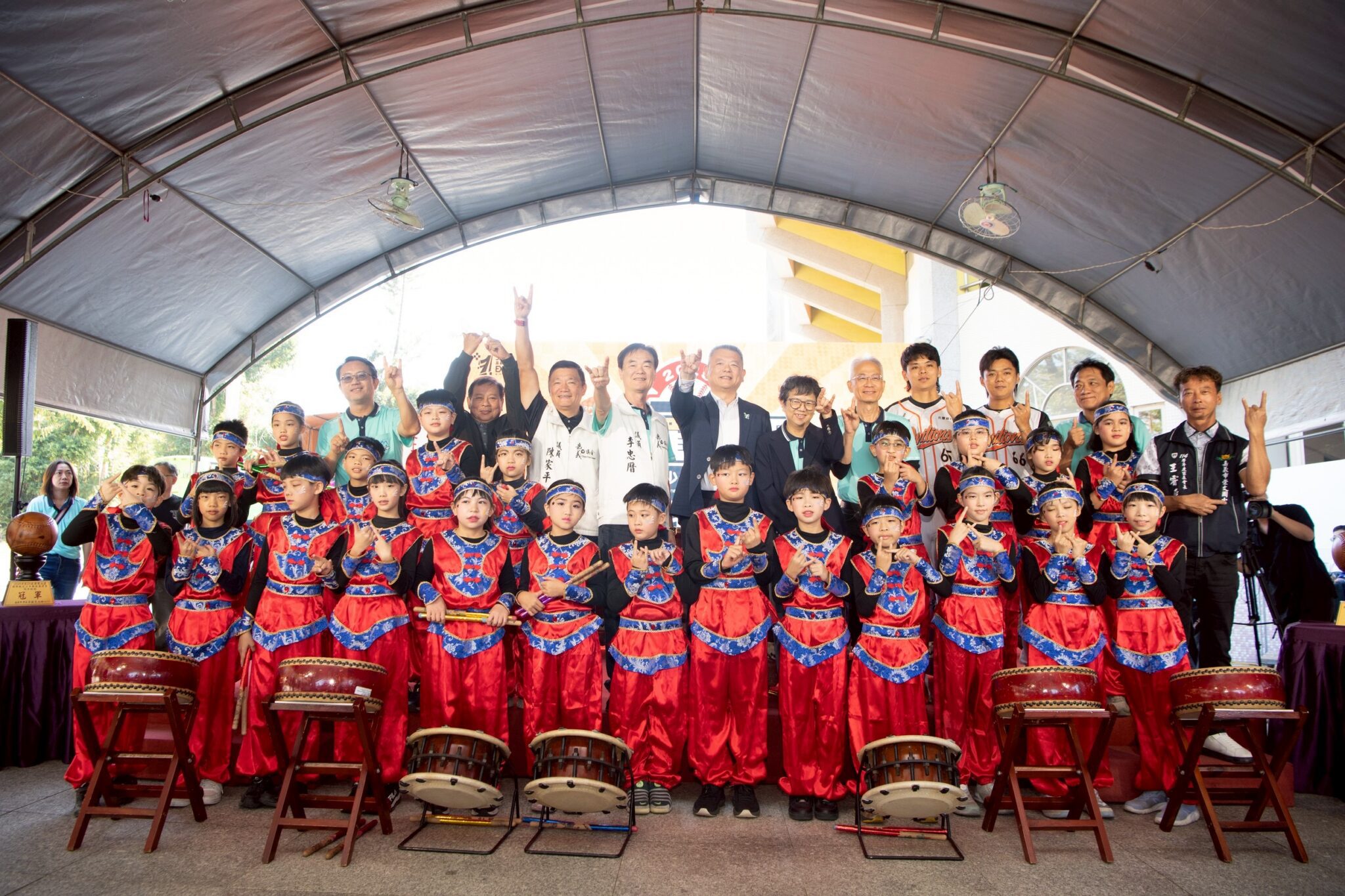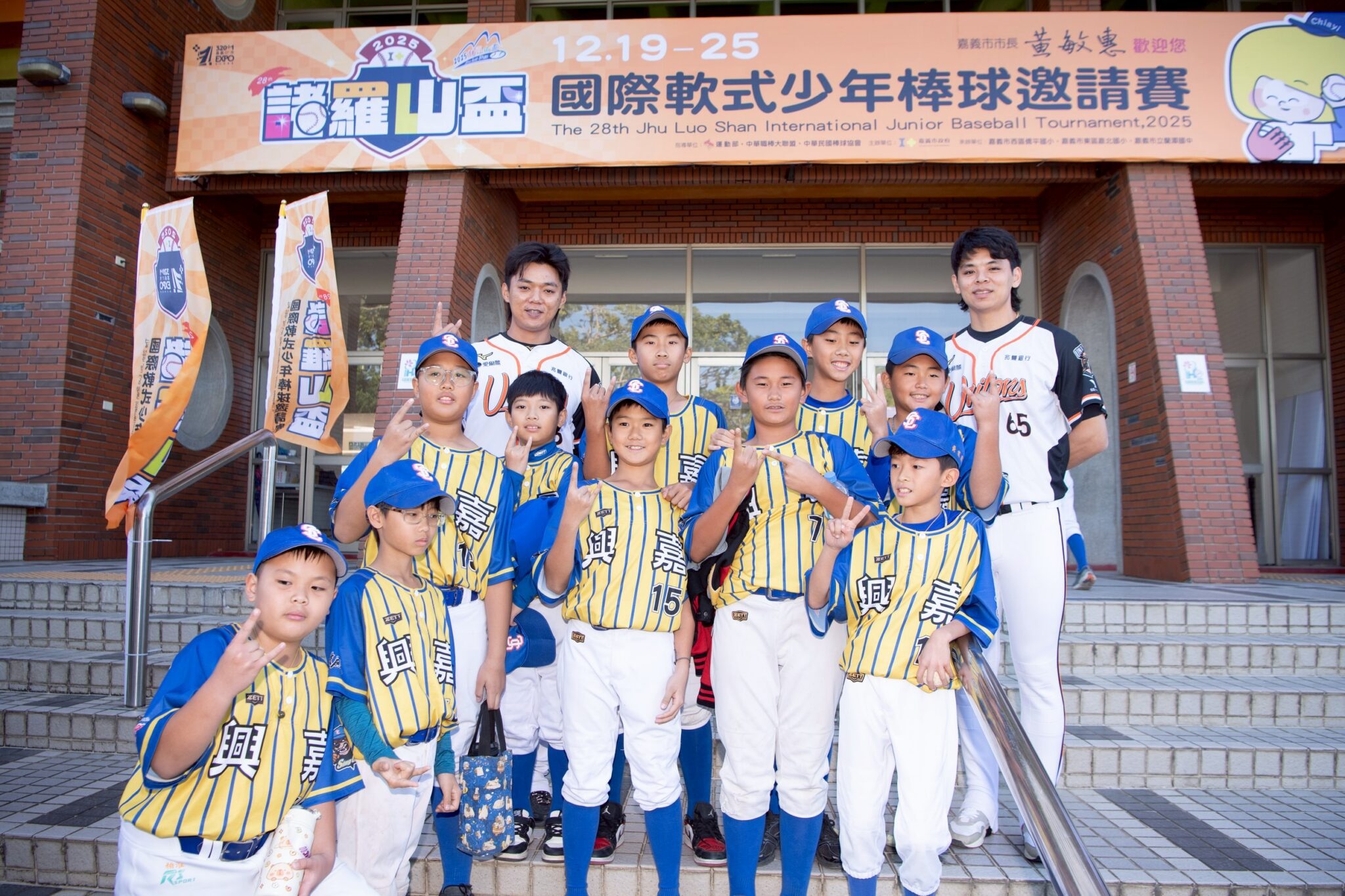 本屆賽事兩位代言人陳重羽、陳重廷也分享,回憶兒時在僑平國小接觸棒球的經驗,是他們成長過程中最純粹、最快樂的時光。小學時能在球場奔跑、專注練習,是培養興趣與韌性的關鍵;即便在求學與訓練之間曾遇到挑戰,這段歷程始終成為延續棒球夢的重要力量。兄弟倆勉勵現場小選手們,把握這段能盡情揮灑與探索的年紀,該讀書就讀書、該練球就練球,開心享受棒球帶來的單純與熱情。最後,在320+1嘉義市城市博覽會開幕之際,他們也以賽事口號喊話-「2025 諸羅山盃,全嘉一起飛!」