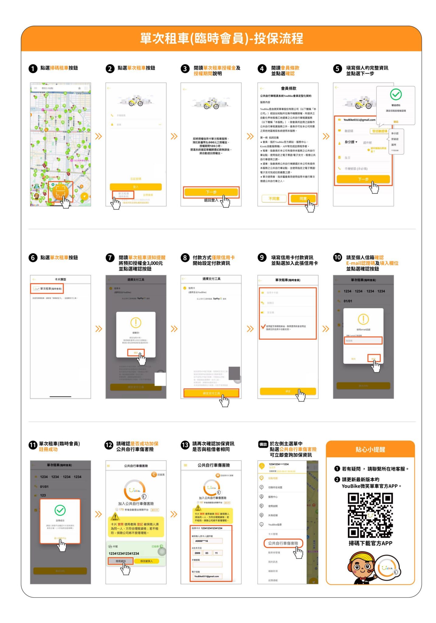 臺北市政府交通局為持續提升公共自行車使用者騎乘保障與安全,自115年1月1日起,臺北市YouBike全車種無論YouBike 2.0或YouBike 2.0E,全面實施投保免費公共自行車傷害險,也將原本未提供傷害險保障的「單次租借(臨時會員)」一併納入保障範圍,讓所有YouBike使用者都能享有一致的安全保障。