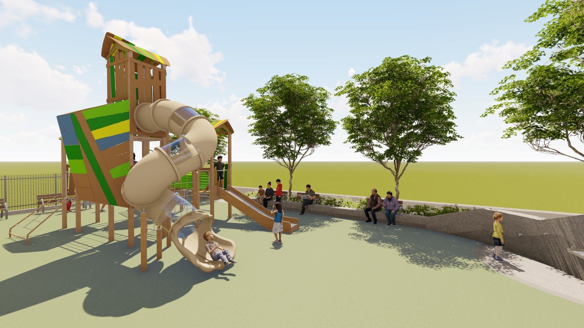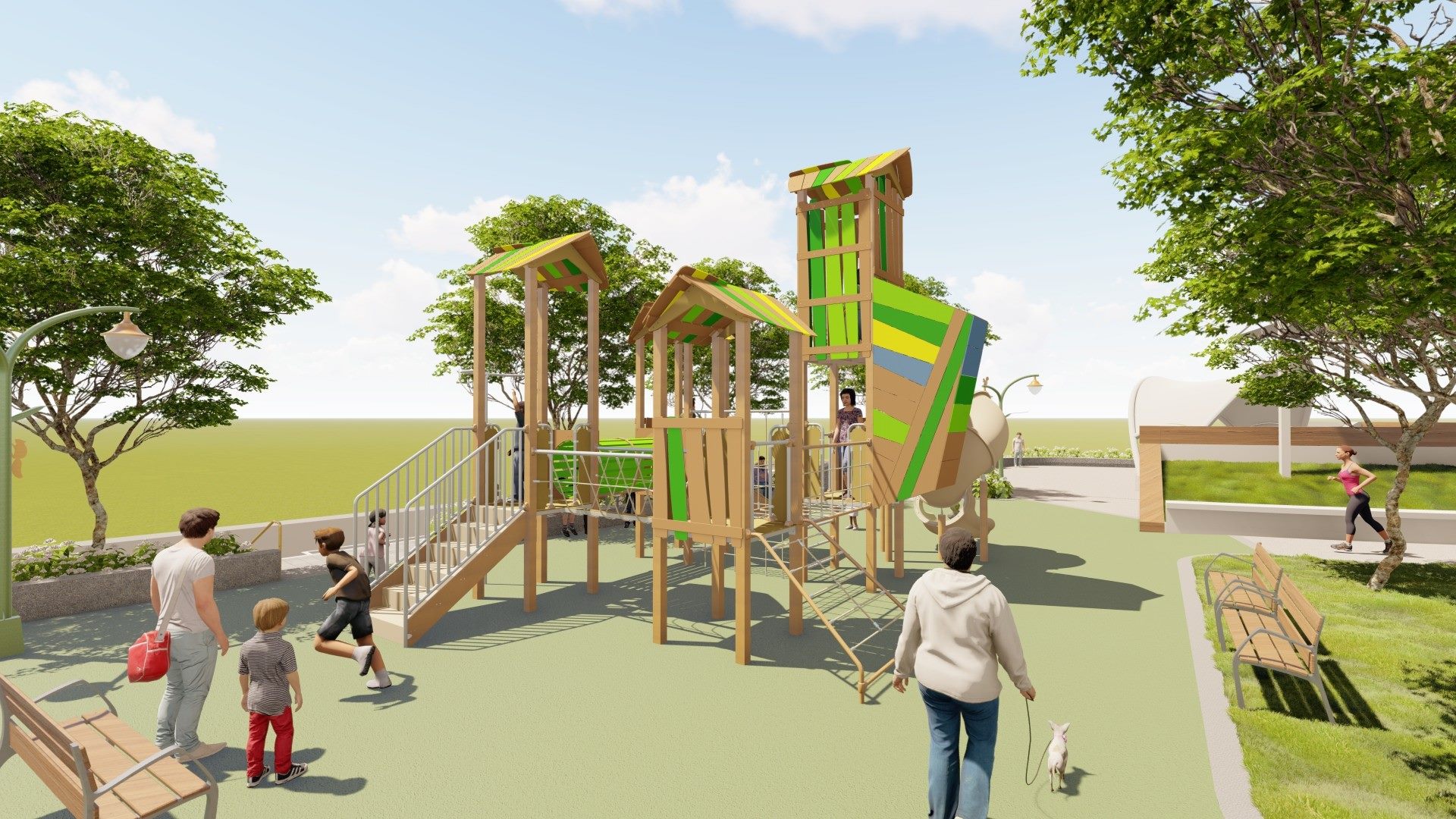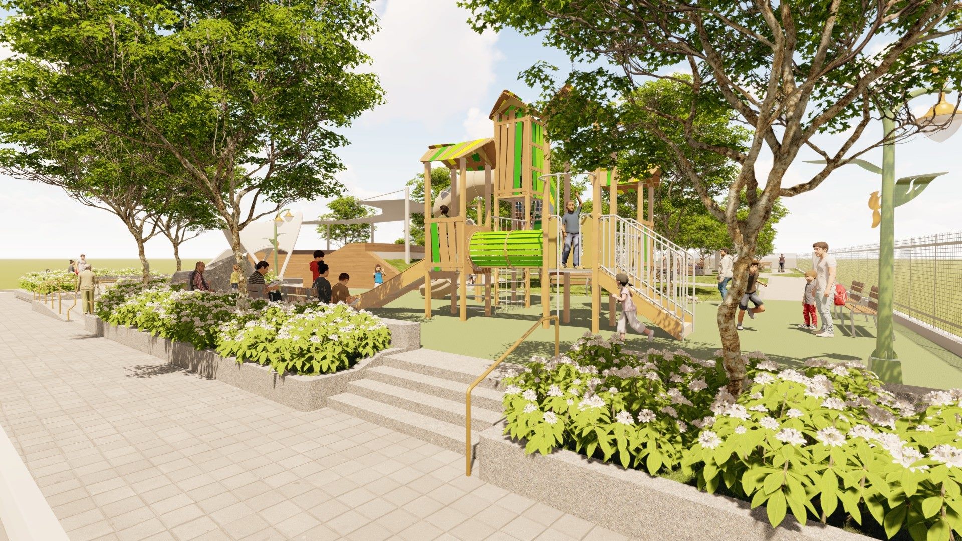 公園處園藝工程隊楊國瑜隊長表示,這次的改善工程主要是要把步道和無障礙動線整合起來,重新檢討高程、拓寬步道,也加了坡道和扶手,讓大家走起來更安全、更方便。同時也更新遊戲和體健設施,特別規劃「樹屋遊戲場」,還有多層次的組合遊具,讓孩子們能玩得更盡興。
