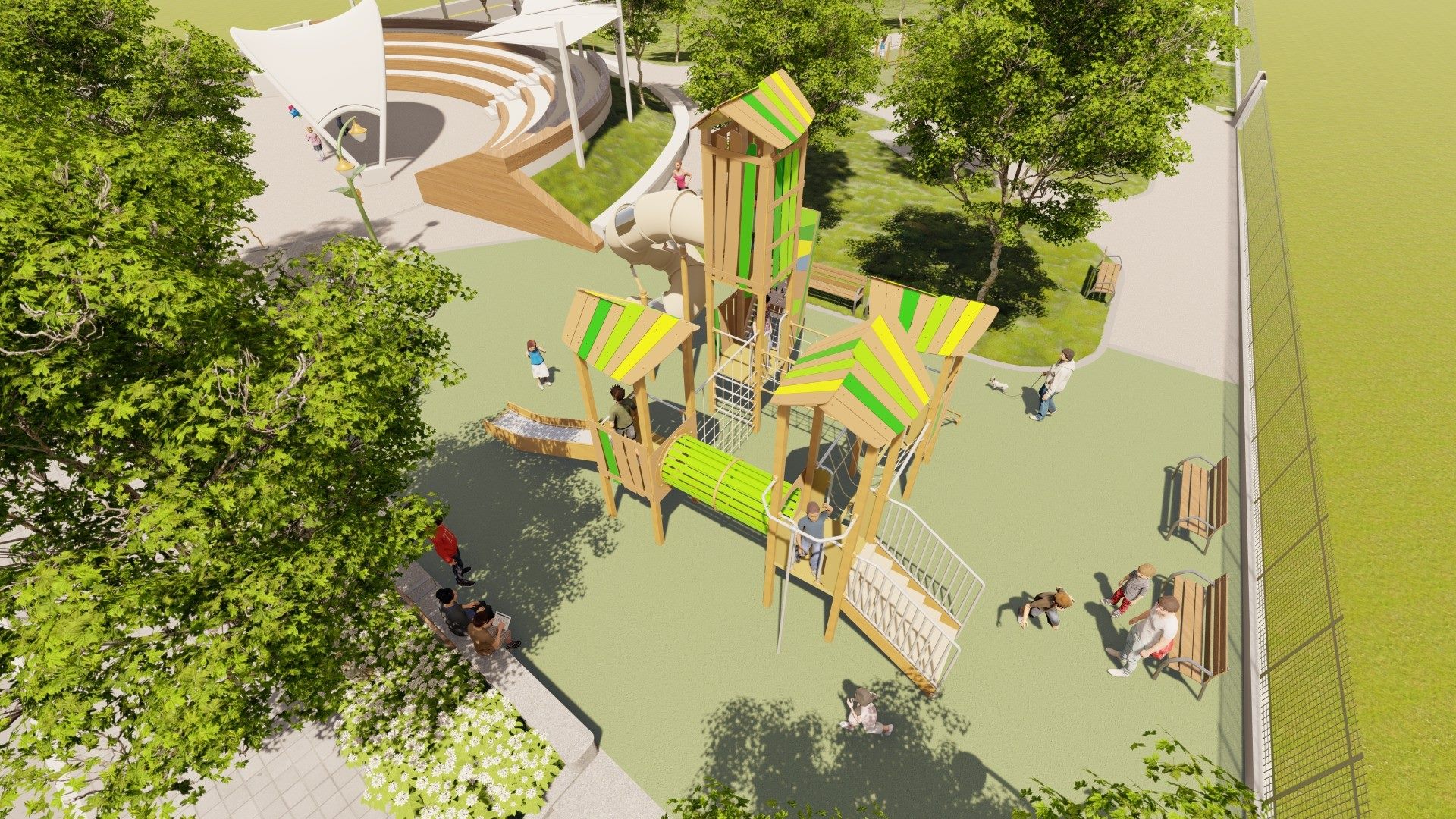 公園處園藝工程隊楊國瑜隊長表示,這次的改善工程主要是要把步道和無障礙動線整合起來,重新檢討高程、拓寬步道,也加了坡道和扶手,讓大家走起來更安全、更方便。同時也更新遊戲和體健設施,特別規劃「樹屋遊戲場」,還有多層次的組合遊具,讓孩子們能玩得更盡興。