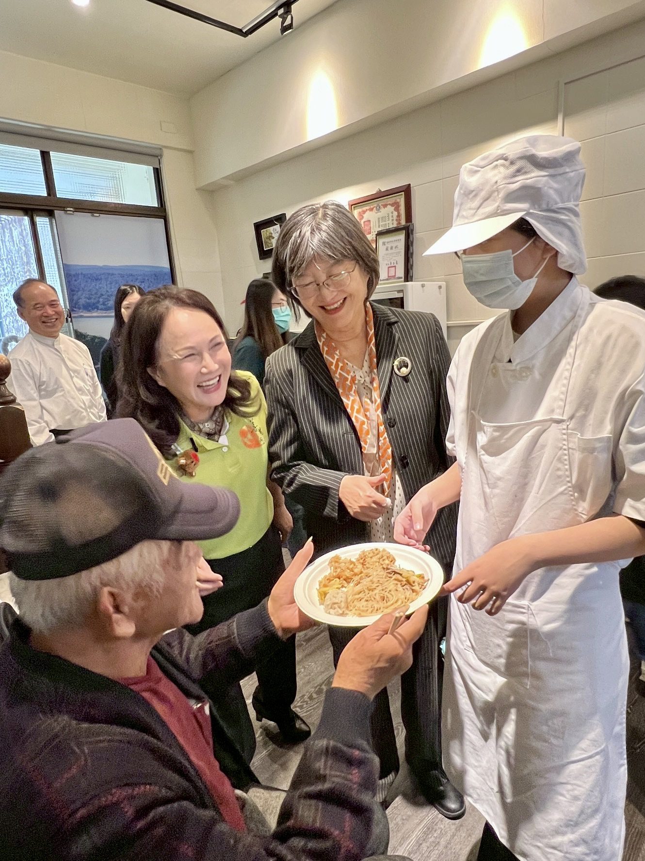 活動最後,由三位到場的學員親手端出自己準備的午餐佳餚,與社區長輩、弱勢家庭及貴賓共享午宴。這頓飯,不只是成果展,更是一場象徵「被社會接住」的溫暖時刻。