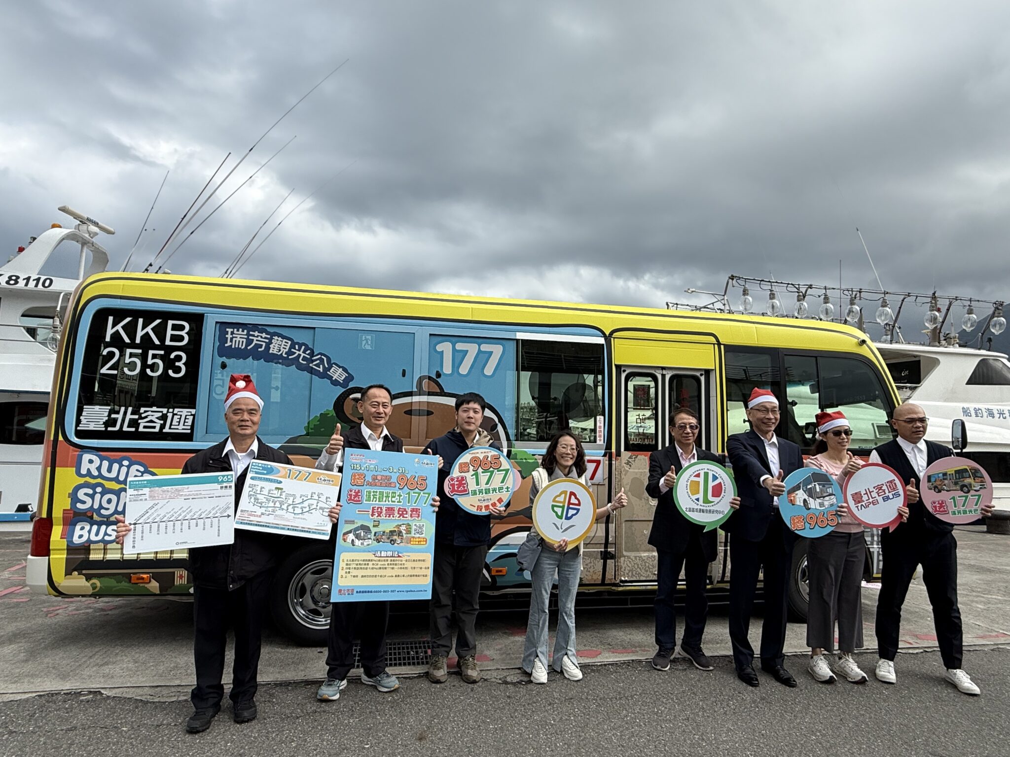 台北客運總經理李建文表示,965路線共6段票,行經雙北市區到瑞芳金瓜石地區,可在瑞芳區的區民廣場站轉乘177路線到深澳漁港、黃金博物館等景點。177路線共2段票,下月起要執行的優化方案,965備有22至40輛車,177備4輛車投入載運,盼遊客在轉運過程從容不迫,好好享受美景。