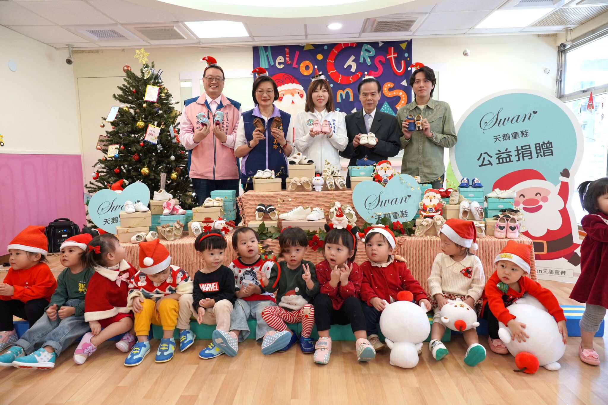 聖誕節到來,孩子們最期待的莫過於一份充滿驚喜的禮物。市議員張維倩連續5年媒合中和區在地製鞋廠商美萬新企業,今(24)日上午捐贈300雙「天鵝童鞋」,提供中和地區12家公共托育中心幼童,讓孩子們穿上新鞋迎聖誕。