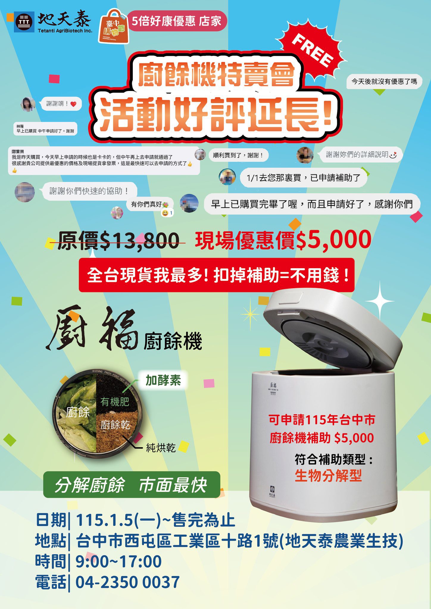 此篇文章最開始出處為: 中市廚餘機線上補助三日破5,200件 最夯、最貴、最大容量機型一次看
