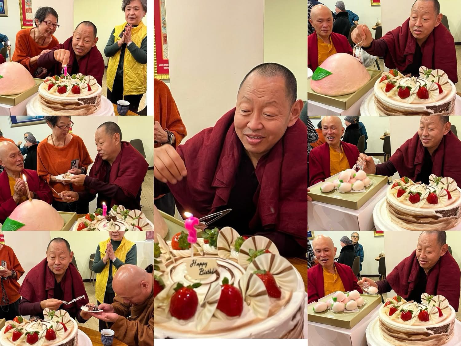 在寒冷的天氣中,來自台東的釋常定法師與釋湛明法師不辭路遠前來賀壽,眾人同聚一堂,向阿彌陀佛與仁波切獻上最真誠的祝福。沒有喧鬧,只有安靜而深長的願力流動。