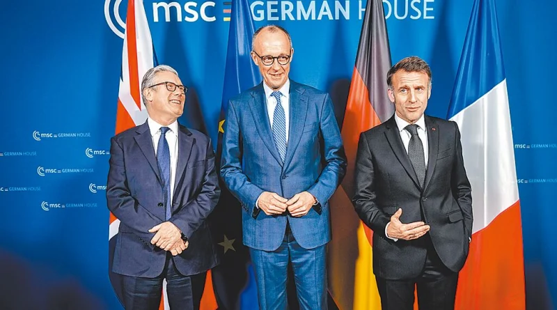 再者,在內部推進戰略自主。歐洲許多國家開始重新分配國防預算,提升歐洲在北約指揮、軍工與關鍵能力上的比重,發展自有防空、情報與網路防禦系統,降低在高科技與軍民兩用產業上對美國的依賴,並透過「反脅迫工具」等機制,建立面對美方關稅與政治壓力的制度化回應選項。德國總理梅爾茨(Friedrich Merz)就呼籲歐洲應制定更強大的自主安全戰略,並與法國總統馬克宏就加入法國核保護傘的可能性進行初步會談。